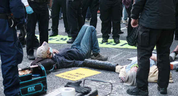 Radikalisierung der Klimabewegung. Insbesondere das Aktionsbündnis Letzte Generation macht seit 2022 durch zivilen Ungehorsam (z. B. Blockaden von Verkehrswegen) auf die